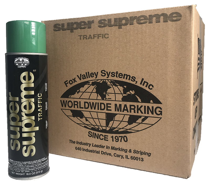 Thomas J Smrt is was the inventor of the first upside down aerosol spray can. Since its inception, Fox Valley Systems has striven to manufacture the highest quality line marking equipment. Fox Valley Super Supreme paint is a much more durable line marker paint, specifically designed for extra heavy duty traffic areas. Our line marking paint lasts up to 50% longer than our standard Super Stripe paint. The modified acrylic paint makes Fox Valley Super Supreme is the hardest wearing paint on the market. Fox Valley Super Supreme Paint lasts up to 50% longer than our standard Super Stripe paint. We make every effort to ensure our products produce the highest quality lines. Our paint cans are designed with a special nozzle for superb line definition and our aerosol paint is the only paint on the market with a 10 year clog-free guarantee.